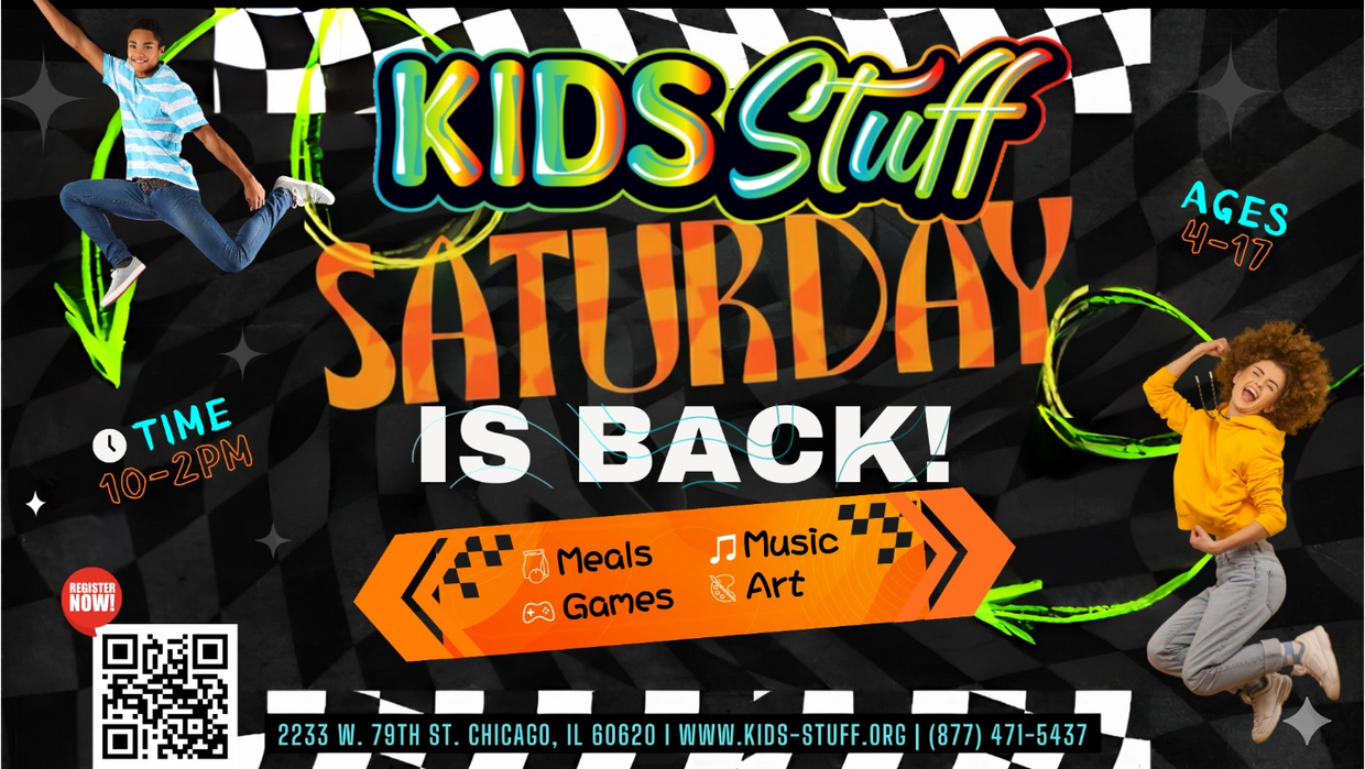 Every Saturday from 10 AM to 2 PM, children and teens ages 4–17 are invited to enjoy a safe, fun-filled program designed just for them. With meals, games, music, art, and more! Kids-Stuff Saturday is the perfect place for kids to learn, grow, and connect with friends in a positive environment. Parents can register their children now and be part of this vibrant community program that continues to inspire and support the next generation.